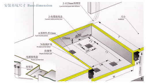 預(yù)埋管在地坑外的走向,由客戶視按鈕安裝位置,動力電源接線盒位置決定管路走向。